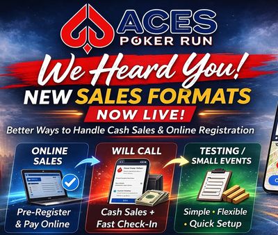Aces Poker Run is the first and only mobile app designed to manage every part of your poker run event—from planning to check-in, card distribution, scoring, and reporting—all in one seamless platform.